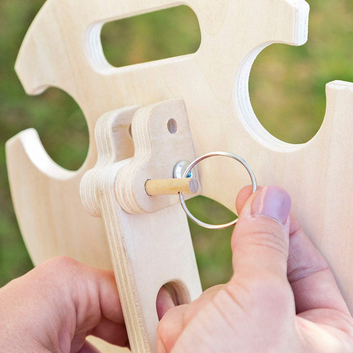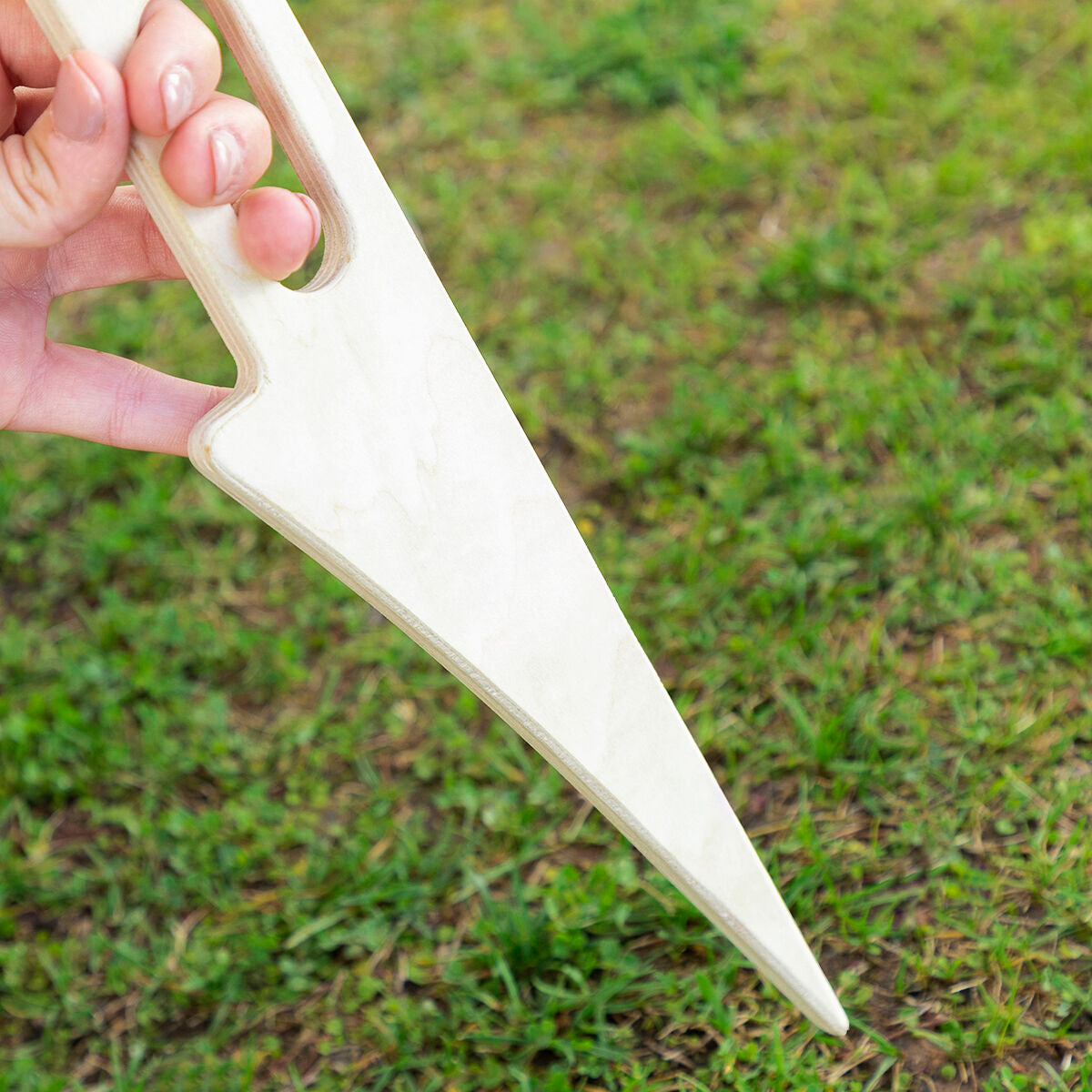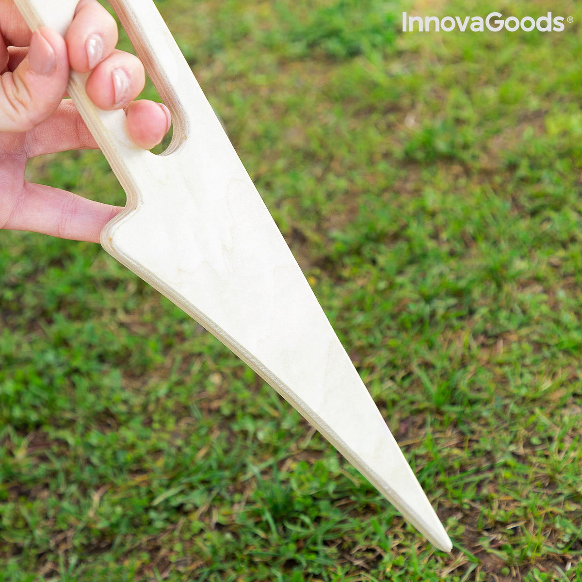 A folding, portable wine table for outdoors, ideal for enjoying some relaxing time in the best company with a good wine. The ideal solution so you don’t have to leave the wine, glasses or snacks on the floor, thereby preventing bugs, spills, dirt, etc. This original lime plywood table is robust, lightweight, easy and convenient to fold and unfold for use or for saving space to make it easier to transport and store. It can be easily be carried and set up on the beach, in the countryside, mountains, garden, etc. All you do is insert its single spike-shaped leg into the ground (soil or sand) and it provides a firm hold. It is easy to insert and to remove. Its flat support area features a hole in which to place a bottle of wine and two holes to place two wine glasses, still leaving space for a small bowl of snacks or aperitifs. It also features two more holes (one on the surface and another on the leg) which can be used to grip and handle it (one of them is also the carry handle). It is quick and easy to clean.